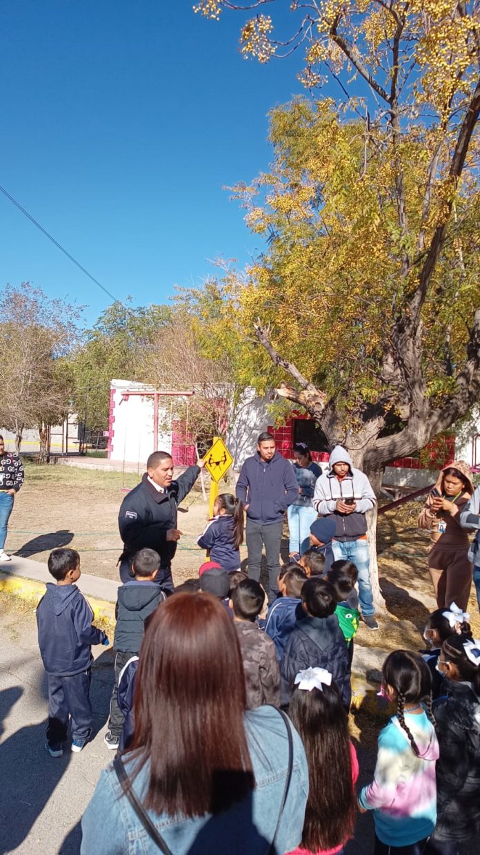 Policías viales destacamentados en el área de Educación Vial recibieron este día en la Mini Ciudad Vial a 73 menores, 76 padres de familia y siete docentes del Jardín de Niños Miguel Hidalgo ubicado en la calle Hacienda Casa de Janos 9505 del fraccionamiento Las Haciendas.