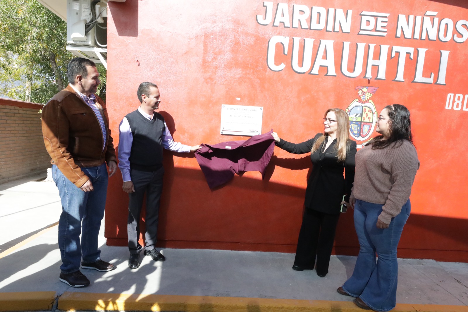 El Presidente Municipal, Cruz Pérez Cuéllar, visitó el Jardín de Niños Cuauhtli para entregar a la comunidad juarense las obras de rehabilitación.