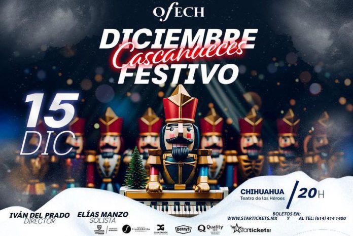 En el marco de las activdades realizadas por la época decembrina, la Secretaría de Cultura, invita al cierre de la Temporada de Otoño que ofrecerá la Orquesta Filarmónica del Estado de Chihuahua (OFECh) con el concierto “Diciembre Festivo” el cuál, estará bajo la batuta del director Iván del Prado, y el solista en piano, Elías Manzo, a realizarse el viernes 15 de diciembre en el Teatro de los Héroes.