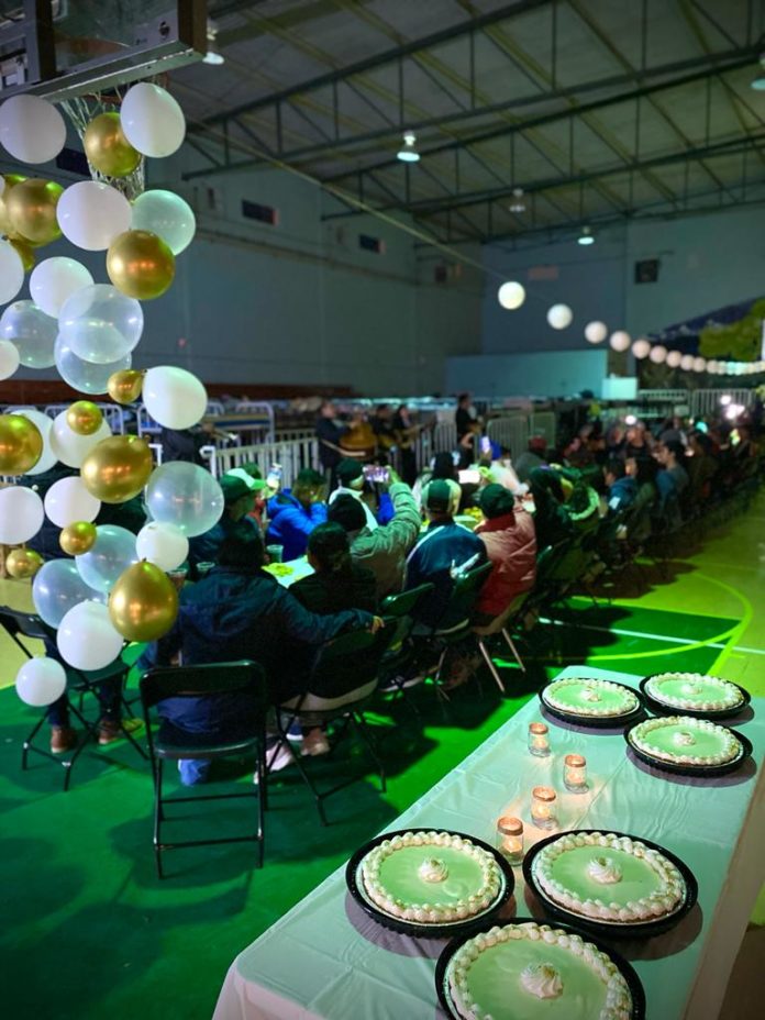 La cena de gala se desarrolló en un ambiente cálido y acogedor, los comensales disfrutaron de tres tiempos que incluyeron delicias como espagueti a la boloñesa, pechuga cordón blue, puré de papa y pay de queso.