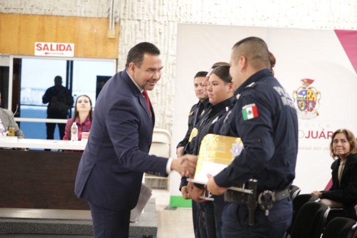 “Quiero decirles a nombre del pueblo de Ciudad Juárez muchas gracias. Pedirles que sigan entregando y haciendo esta labor, no sólo por el impacto que pueda tener en lo individual, que es mucho, por supuesto, sino el impacto que puede causar en otros integrantes de la corporación para que se inspiren en ustedes para seguir sirviendo y protegiendo a la comunidad”, expresó el alcalde.