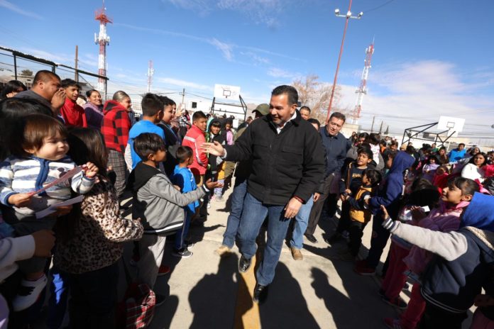 Cientos de niños de la colonia Insurgentes disfrutaron la entrega de regalos que encabezó el Presidente Municipal, Cruz Pérez Cuéllar.