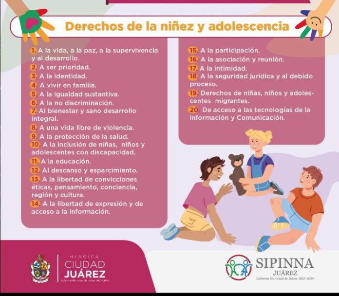 El Sistema Municipal de Protección Integral de Niñas, Niños y Adolescentes (SIPINNA), emite algunos derechos de los infantes con el propósito de recordarles a los adultos la importancia de respetarlos.