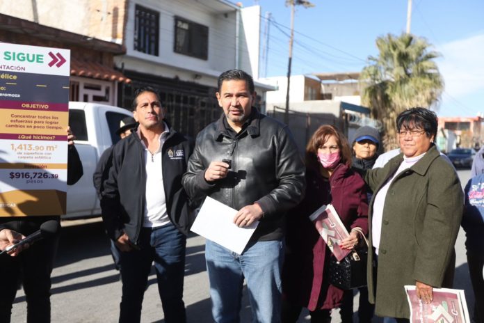 Esta mañana el Presidente Municipal, Cruz Pérez Cuéllar, estuvo en la colonia Jardines del Aeropuerto para hacer entrega de las obras de repavimentación de la calle Hélice, ejecutadas por la Dirección General de Obras Públicas.