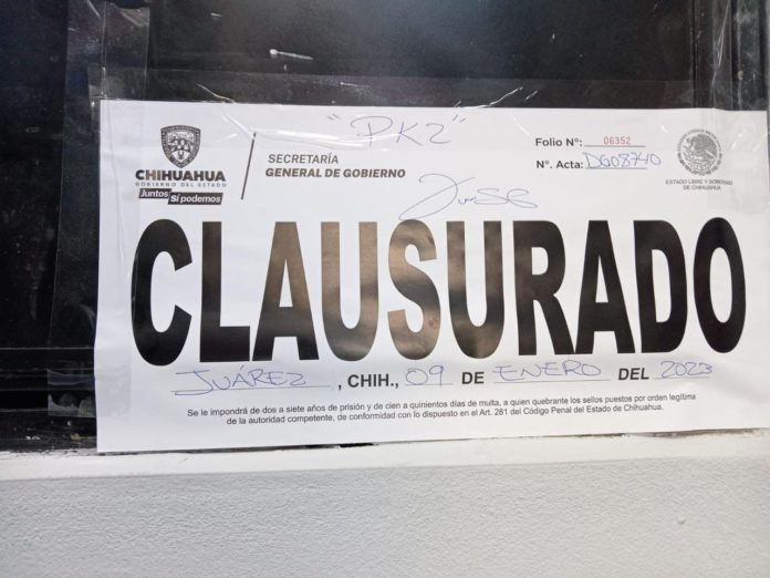• Restaurante Bar “Perla Negra Mariscos Chela” por permiso provisional vencido (Ciudad Juárez).