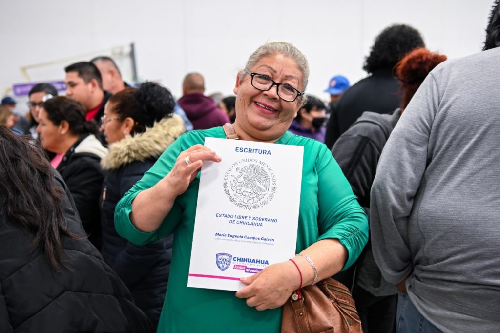 El Gobierno del Estado en alianza con el Instituto Nacional del Suelo Sustentable (INSUS), entregó en Ciudad Juárez 560 escrituras de vivienda a igual número de familias, lo que las convierte en propietarias de su patrimonio.