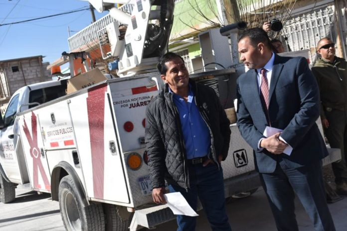 Implementando tecnología led para mejorar las condiciones lumínicas del sector, personal de la Dirección General de Servicios Públicos, a través de la Dirección de Alumbrado Público, trabaja en instalar 670 luminarias en la colonia El Mezquital, con una inversión de 7 millones 130 mil 008 pesos.