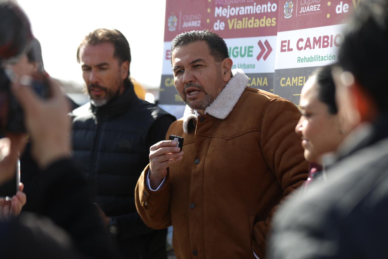 Ahí, el Alcalde destacó que se trata de una gran obra para la comunidad, pues mejorará en gran medida el principal acceso a Ciudad Juárez, brindando a los juarenses y a los visitantes una imagen más noble en la entrada de esta frontera.