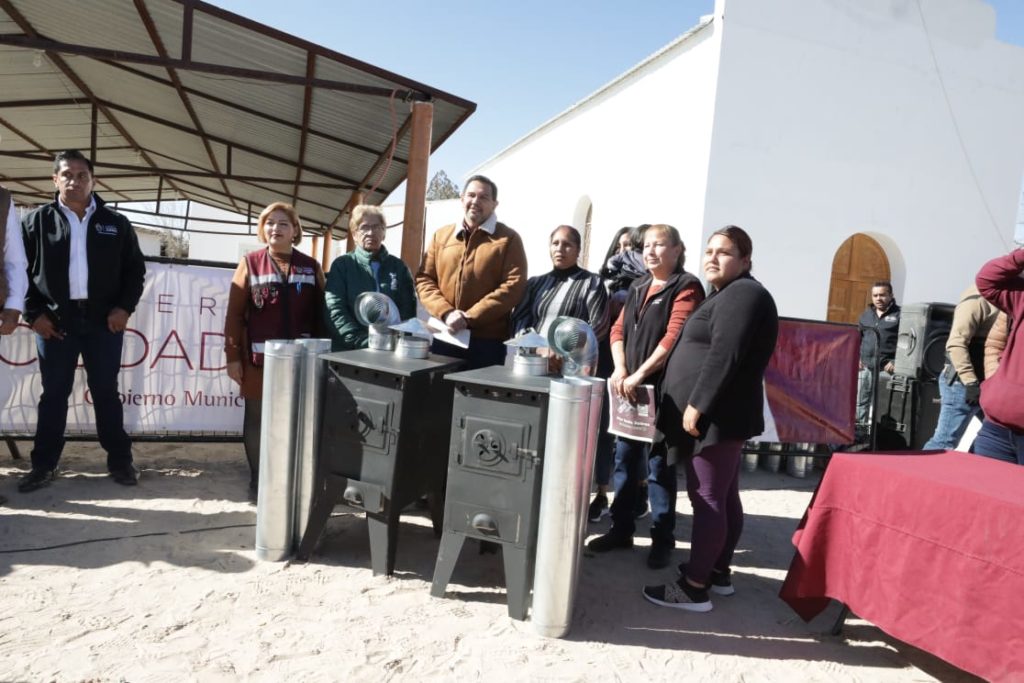 Librada es una adulta mayor que radica en el poblado San Agustín, en el Valle de Juárez. La mujer vive con su hija en una pequeña casa donde carece de calentones, por lo que este día recibió un aparato de leña y cobijas por parte del Gobierno Municipal.