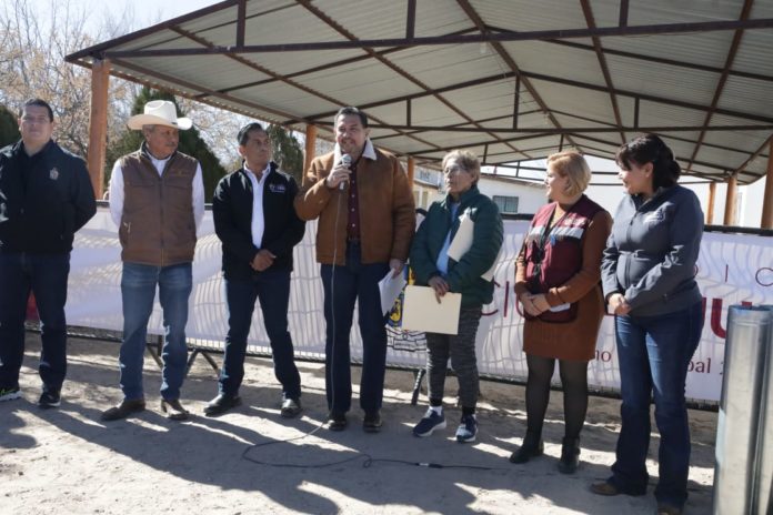 Como parte de su recorrido por el Valle de Juárez, el Presidente Municipal Cruz Pérez Cuéllar, en coordinación con Desarrollo Social, entregó calentones de leña, cobijas y rollos de hule para cobertura de techos en el ejido Tres Jacales.