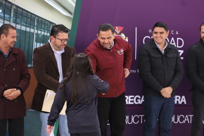 Este día el Presidente Municipal, Cruz Pérez Cuéllar, hizo entrega de un domo a la Escuela Primaria Federal Rarámuri, ubicada en la colonia Sierra Vista, lo que beneficia a los más de 250 alumnos, quienes expresaron estar muy agradecidos por esta obra, ya que podrán realizar sus actividades deportivas con regularidad sin preocuparse por el calor o la lluvia.
