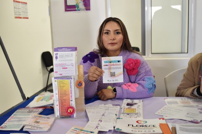 Elvira Urrutia Castro, titular del IMM, explicó que el módulo informativo es parte de las acciones de vinculación que mantiene el Instituto Municipal de las Mujeres con organizaciones internacionales para llegar a más espacios y difundir información sobre prevención de la violencia de género y los servicios de atención especializada a los que pueden acceder las mujeres, sus hijas e hijos.
