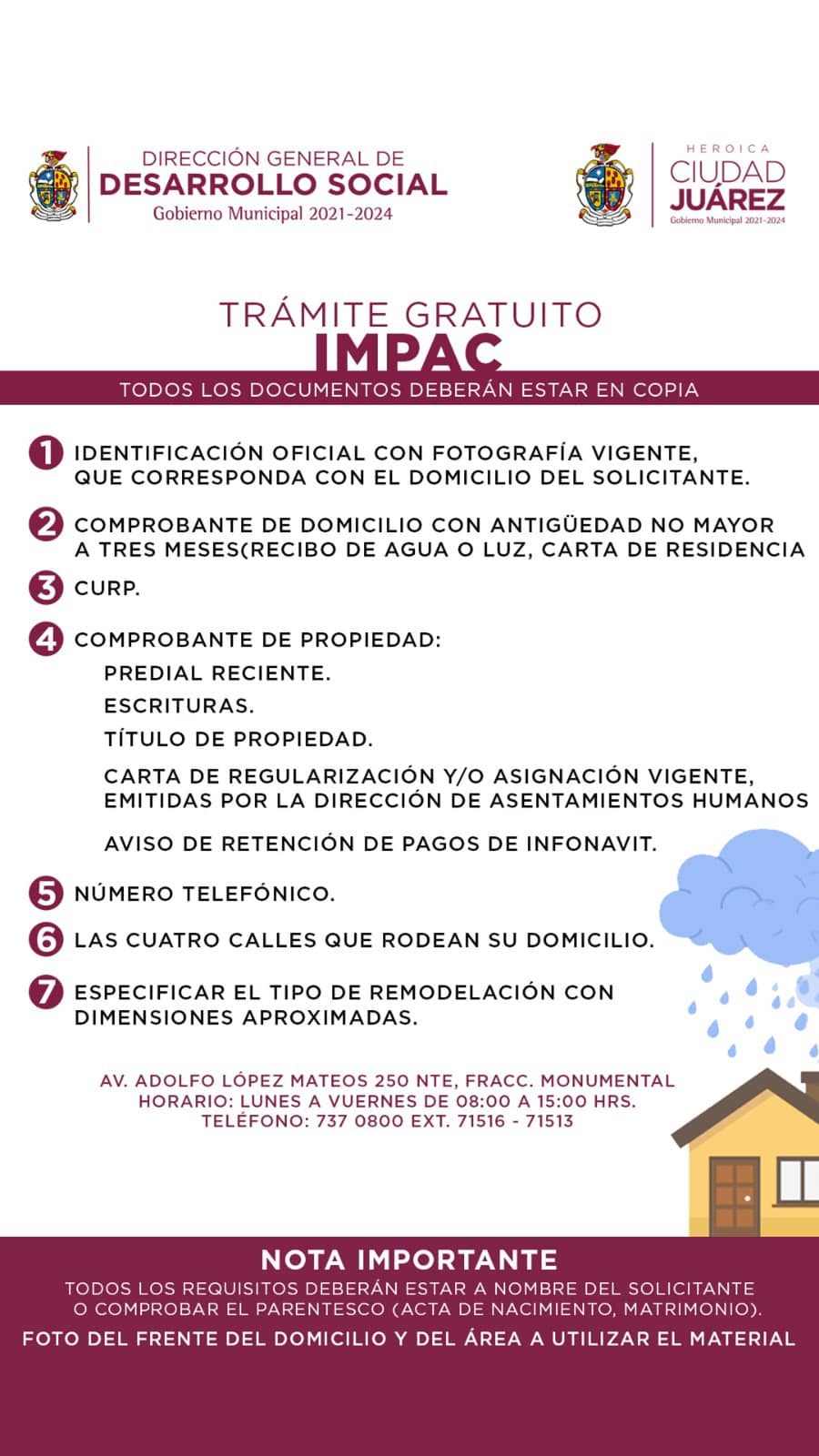 La Dirección General de Desarrollo Social invita a la ciudadanía a realizar su trámite de solicitud de impermeabilizante para techo, previo a la temporada de lluvias en la ciudad.
