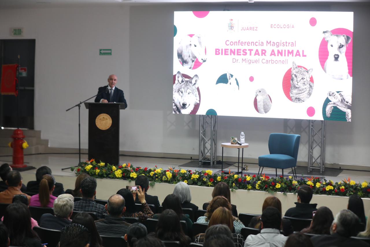 Rubí Enríquez, presidenta del Sistema para el Desarrollo Integral de la Familia del Municipio de Juárez (DIF), encabezó este evento al que acudió en representación del alcalde Cruz Pérez Cuéllar; dio la bienvenida al conferencista resaltando el interés que ha tenido el Gobierno Municipal por defender el bienestar animal con acciones concretas en beneficio de las mascotas.