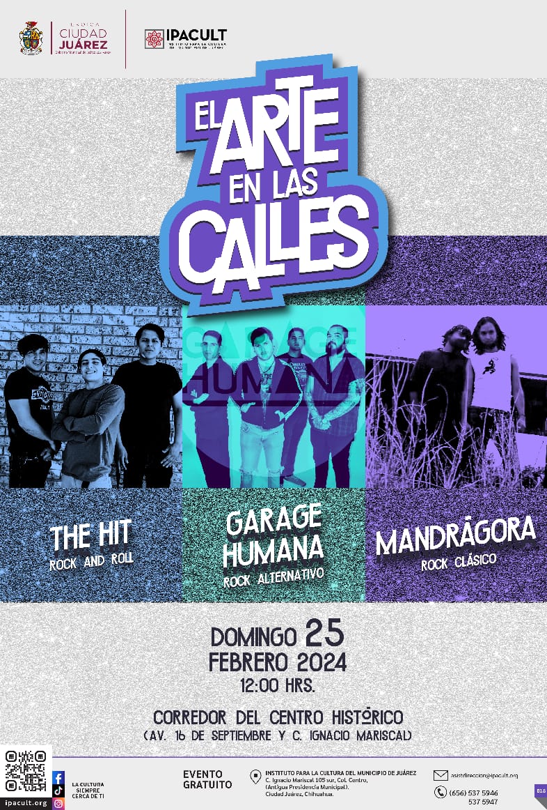 Siempre es un buen momento para escuchar propuestas que potencien el bagaje artístico y cultural; de tal modo, el Instituto para la Cultura del Municipio de Juárez (IPACULT), llevará a cabo su programa Arte en las Calles, el próximo 25 de febrero a las 12:00 del mediodía.