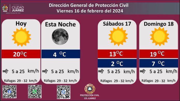 La Dirección General de Protección Civil informó que este viernes la temperatura máxima permanecerá en los 20 grados centígrados, mientras que la mínima al anochecer caerá a los 4 grados.