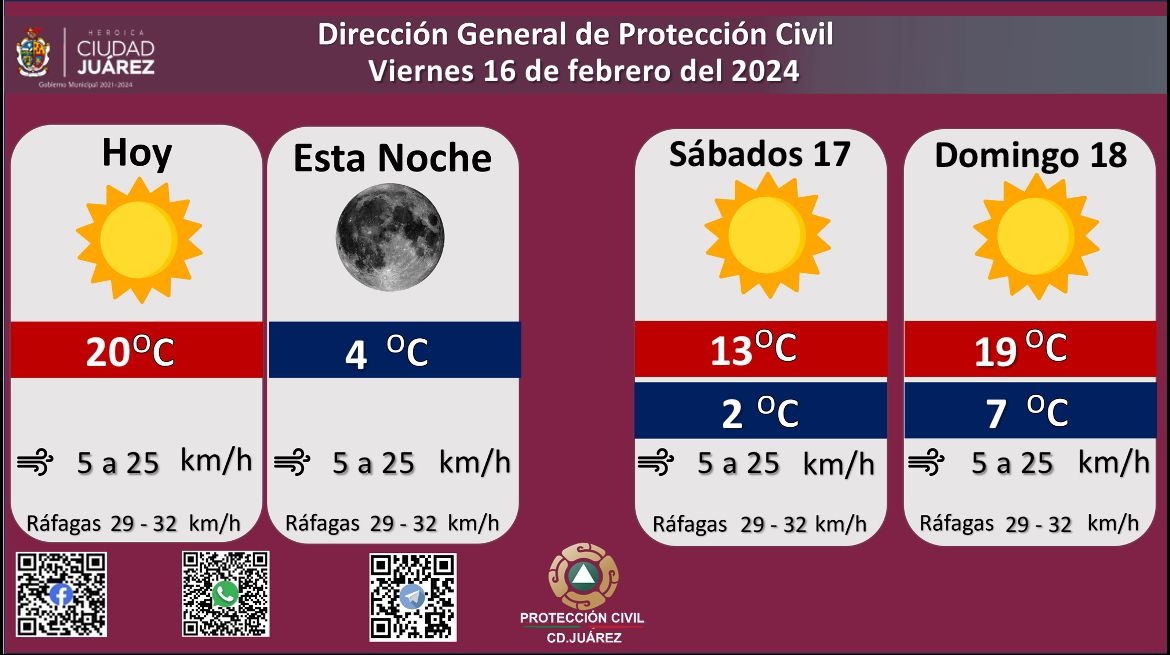 Además, se esperan ráfagas de viento que oscilarán entre los 5 y 32 kilómetros por hora, con probabilidades de lluvia menores al 10 por ciento, comentó Roberto Briones Mota, director general de la dependencia.