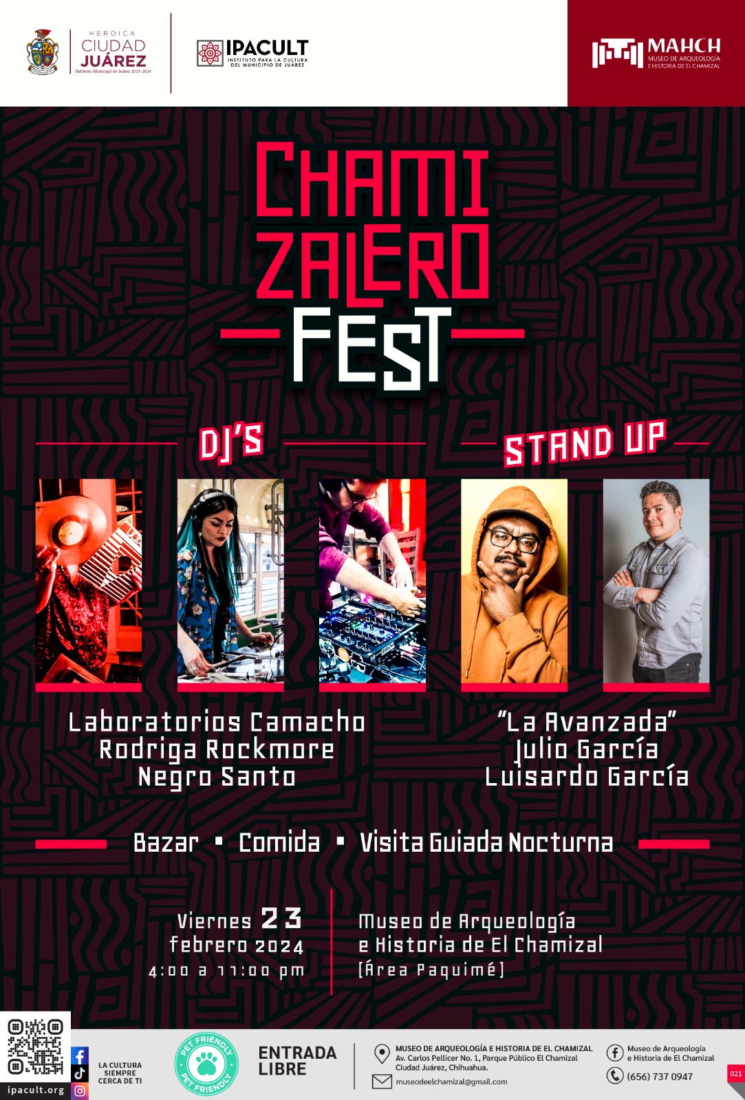 Chamizalero Fest, tendrá bazar, talleres, exposiciones, y para esta primera edición, la música estará a cargo de los DJ Rodriga Rockmore, Laboratorios Camacho y Negro Santo. En cuanto a la comedia, se presentarán “La Avanzada” con Julio García y Luisardo García.