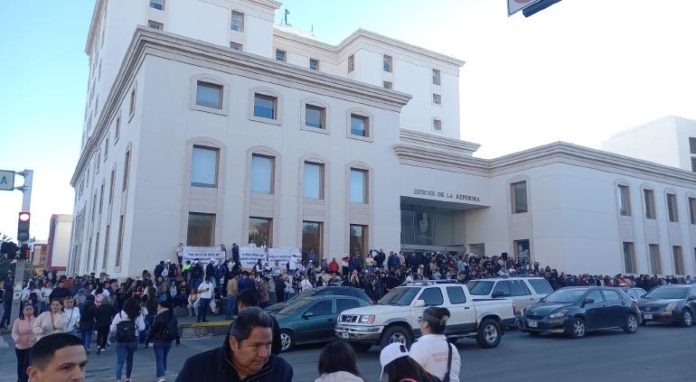 Esta mañana, un grupo numeroso de maestros de la Sección 42 del Sindicato Nacional de Trabajadores de la Educación (SNTE) tomaron las instalaciones de la Secretaría de Hacienda en el centro de la ciudad de Chihuahua.