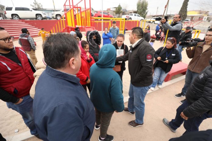 El Presidente Municipal, Cruz Pérez Cuéllar, supervisó los trabajos de rehabilitación del parque División del Norte, el cual está ubicado en la calle Francisco Villa, de la colonia División Norte.