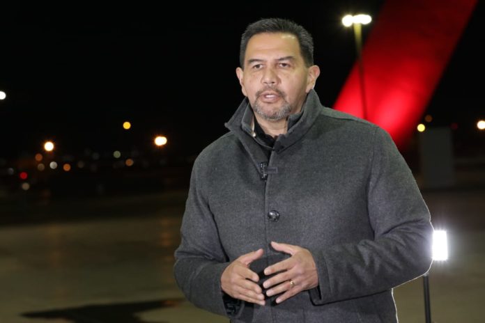 En un acto celebrado en la Plaza de la Mexicanidad, el Presidente Municipal, Cruz Pérez Cuéllar, dirigió un mensaje a los habitantes de Ciudad Juárez, destacando los logros y obras realizadas durante su administración, resaltando la ausencia de deuda pública asociada a estas acciones.