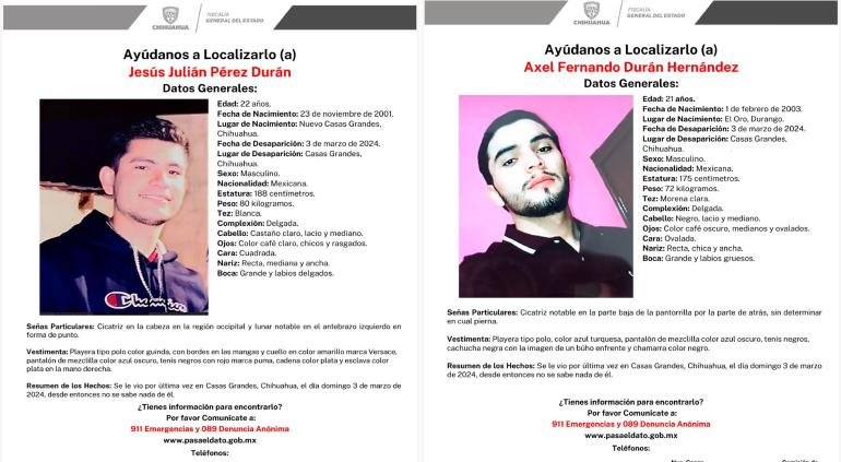 Se tratan de Jesús Julián Pérez Durán y Axel Fernando Durán Herńandez, de 22 y 21 años respectivamente.