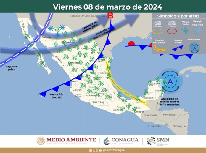 Durante el viernes habrá lluvias aisladas en Ascensión, Janos, Casas Grandes, Madera, Nuevo Casas Grandes, Galeana, Ignacio Zaragoza, Buenaventura, Gómez Farías y Namiquipa.