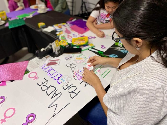 Santiago González Reyes, titular de la dependencia, informó que el encuentro se desarrolló en el Café Sansol, donde las participantes se sumergieron en la elaboración de pancartas mientras participaban en una charla que abordaba los antecedentes del 8 de marzo.