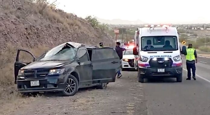 Dos mujeres y un hombre resultaron heridos luego de que perdieran el control de su camioneta Dodge Journey y volcaran en la carretera Chihuahua-Juárez.