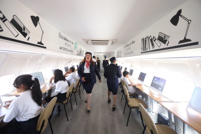 El Biblioavión es un espacio de aprendizaje, pero sobre todo un lugar donde los niños pueden interactuar de manera virtual, además de aprender de forma lúdica.