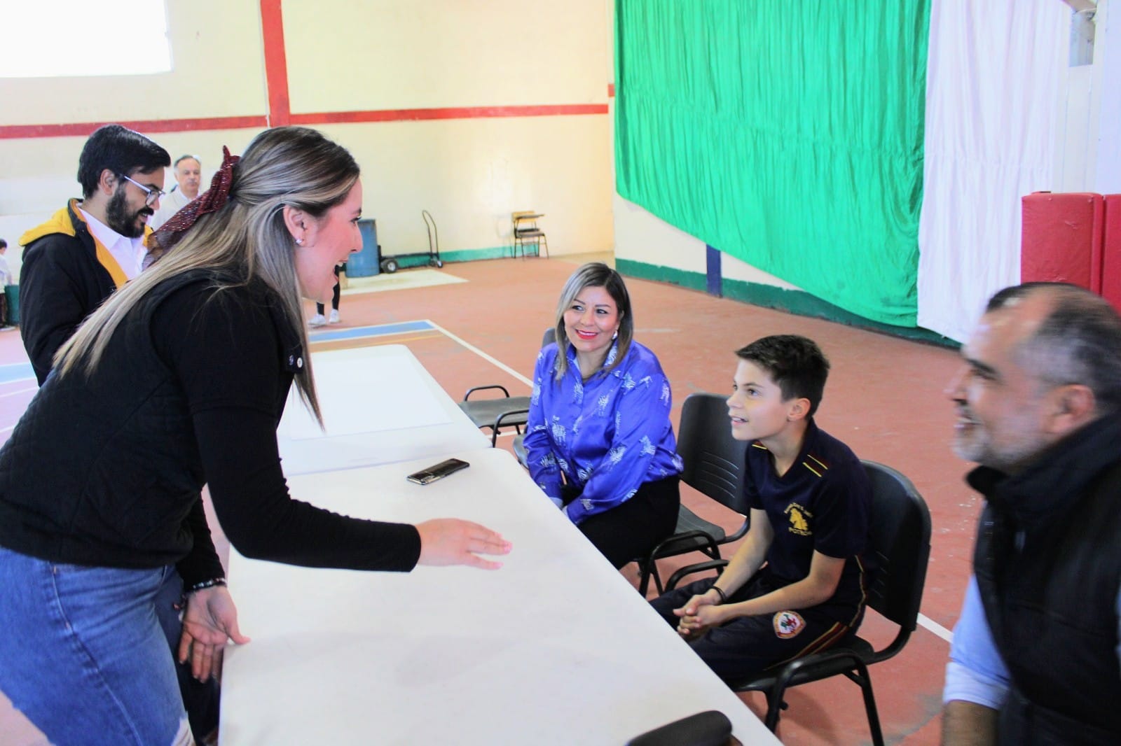 Durante su visita a la escuela primaria Eloy S. Vallina, la joven legisladora fue recibida por alumnos de todos los grados; reunidos en el gimnasio, brindaron un fuerte aplauso a la legisladora y al estudiante de sexto grado, Jesús Mauricio Aguilera Ortiz.