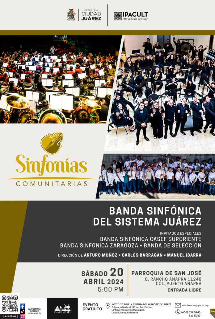 El Instituto para la Cultura del Municipio de Juárez (IPACULT) llevará a cabo el programa Sinfonías Comunitarias este sábado 20 de abril a las 5:00 de la tarde.