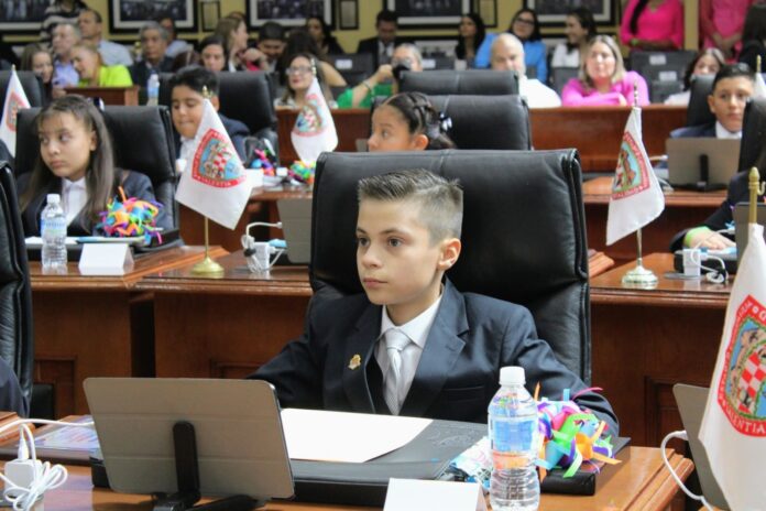 En representación de la diputada América García, en una sesión especial con motivo de la celebración del Día de la Niñez, el jovencito fue insaculado para ocupar el cargo de Diputado Infantil por un día; lo anterior, de acuerdo con el decreto generado por la comisión de Educación del Poder Legislativo.