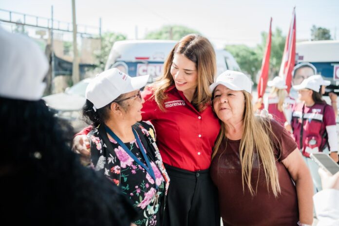 Rubí Enríquez, la esposa del candidato a la alcaldía por la coalición “Sigamos Haciendo Historia por Chihuahua”, Cruz Pérez Cuéllar, se reunió con vecinos de las colonias Morelos y División del Norte, además de recorrer el mercado Andrés Figueroa.