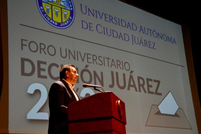 Ciudad Juárez, Chih.- El candidato a la alcaldía por la coalición “Sigamos Haciendo Historia por Chihuahua”, Cruz Pérez Cuéllar, asistió esta mañana al Foro Universitario “Decisión Juárez 2024” para dialogar con los estudiantes y presentar sus propuestas.