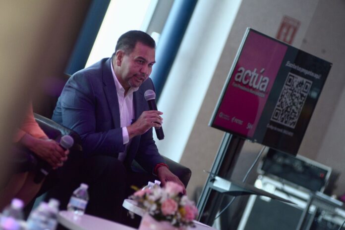 Ciudad Juárez, Chih.- El candidato a la alcaldía por la coalición “Sigamos Haciendo Historia por Chihuahua”, Cruz Pérez Cuéllar, presentó su visión de gobierno ante estudiantes a través de “Actúa” Foro Presidencial Municipal 2024, organizado por el Tecnológico de Monterrey, campus Ciudad Juárez.