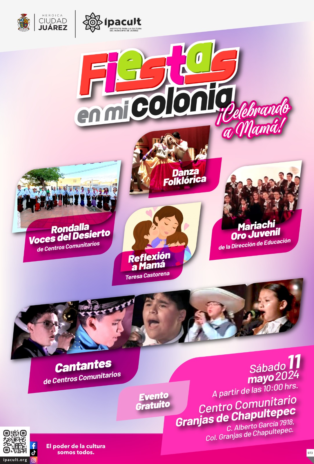 Fiestas en mi colonia es uno de los programas sociales del Instituto para la Cultura del Municipio de Juárez (IPACULT), que en esta ocasión presentará un espectáculo dedicado a las madres de la localidad.