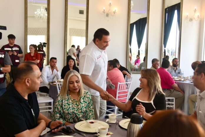 Ciudad Juárez, Chih. – Cruz Pérez Cuéllar, candidato a la alcaldía por la coalición “Sigamos Haciendo Historia por Chihuahua”, reafirmó su compromiso de apoyar el turismo médico y de reuniones durante una reunión con el Clúster de Salud y Turismo Médico, representantes de Salones de Eventos y las Ligas Infantiles de Béisbol.