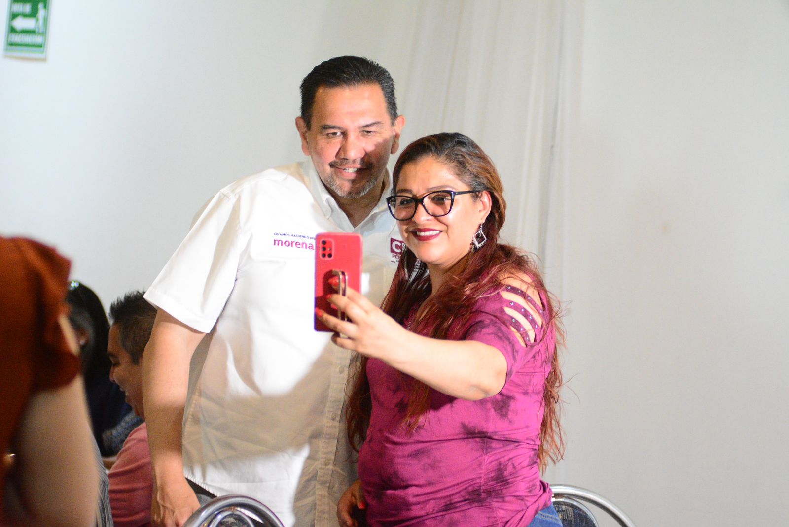 Ciudad Juárez, Chih.- El candidato a la alcaldía por la coalición “Sigamos Haciendo Historia en Chihuahua”, Cruz Pérez Cuéllar, se reunió con varios ciudadanos que han impulsado proyectos a través del Presupuesto Participativo, a quienes agradeció su interés en la transformación de la ciudad.