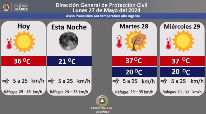 La Dirección General de Protección Civil emitió un aviso preventivo ante las altas temperaturas que se registrarán a partir de este lunes 27 de mayo.