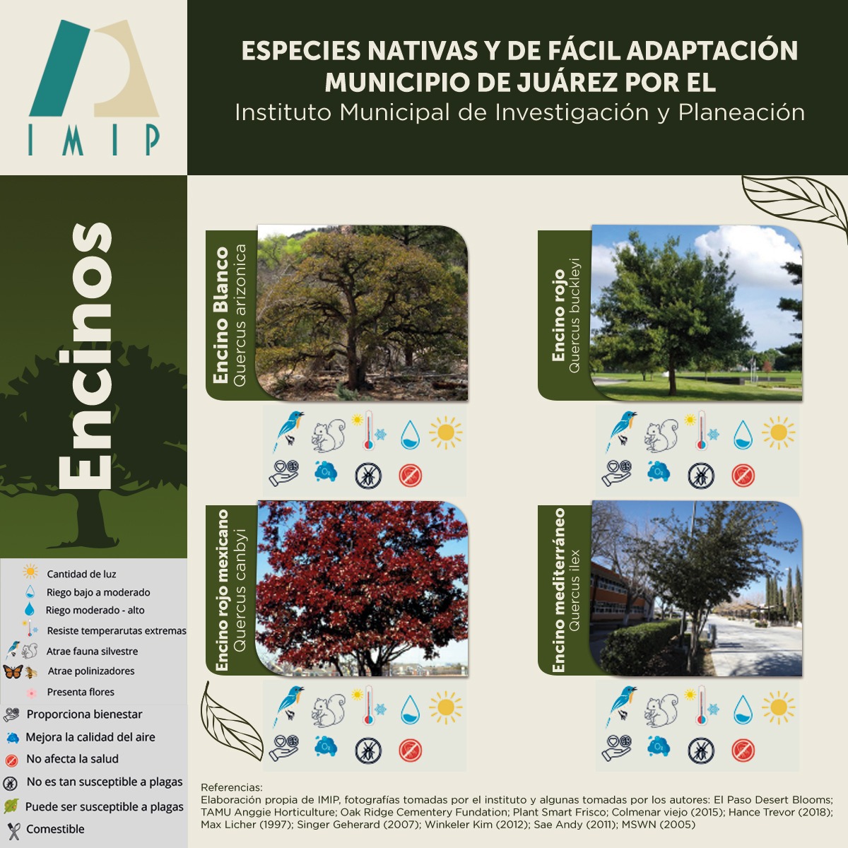 El Instituto Municipal de Investigación y Planeación (IMIP), invita a los juarenses interesados en plantar un árbol o mejorar las condiciones de sus áreas verdes, a tomar en cuenta la viabilidad de las especies de flora nativa de la región, así como aquellas que se adaptan con facilidad al clima.