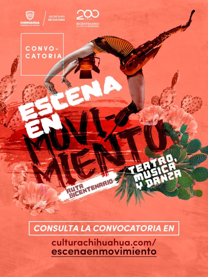 La Secretaría de Cultura invita a las compañías artísticas a participar en la convocatoria “Escena en Movimiento Ruta Bicentenario”, que se desarrollará en las regiones Frontera, Paquimé, Desierto, Conchos-San Pedro, Sur, Llanos centrales, Papigochi-Sierra Norte y Sierra Tarahumara.