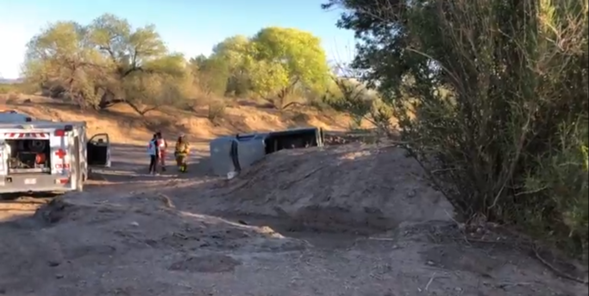 La mañana de este lunes, aproximadamente 06:50 horas se registró la volcadura de una camioneta Pick Upen la zona conocida como “Las Polleras”, dejando como saldo9 una persona fallecida y otra lesionada, la cual quedó atrapada, por lo que fue necesaria la intervención de elementos de la Fiscalía, quienes se hicieron cargo del levantamiento del cuerpo del fallecido.