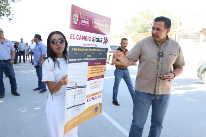 Continuando con la rehabilitación de calles de la ciudad, esta tarde el Presidente Municipal Cruz Pérez Cuéllar entregó la rehabilitación de la calle Batalla de Paredón a los vecinos del sector de Colinas del Sur, obra correspondiente al Presupuesto Participativo 2023.