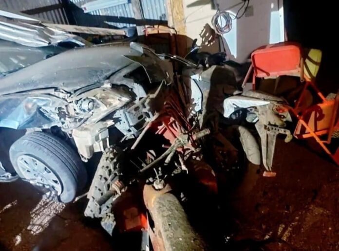 La madrugada de este jueves, el responsable de un choque contra un puesto de lámina huyó del lugar dejando abandonado el vehículo.
