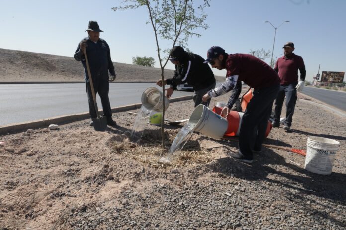El funcionario explicó que se estuvieron trasplantando huizaches y palo verdes que son resilientes y adaptados a la región desértica de Ciudad Juárez.