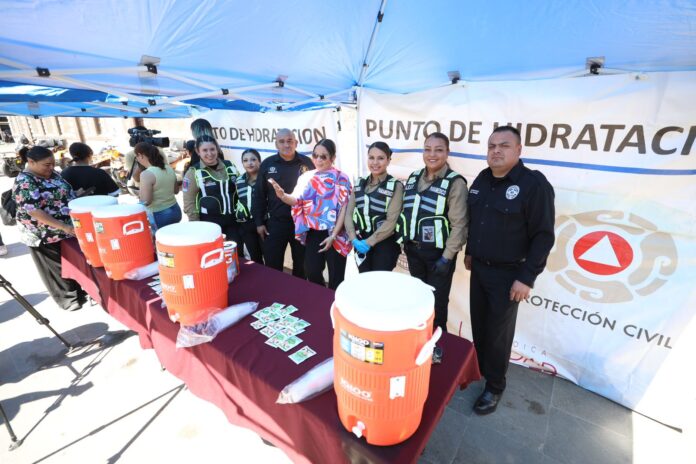 El Gobierno Municipal, a través de la Dirección General de Protección Civil, dio arranque oficial a la campaña de hidratación 2024 que tiene como propósito atender a los juarenses que circulan en la Zona Centro y en el Puente Internacional Paso del Norte, dotándolos de bebidas para evitar golpes de calor.