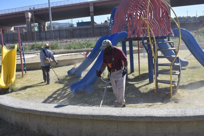 La Dirección de Parques y Jardines atendió esta semana con labores de mantenimiento y limpieza el parque de Las Tortugas, ubicado sobre el bulevar Bernardo Norzagaray, dio a conocer Daniel Iván Zamarrón Saldaña, titular de la dependencia.