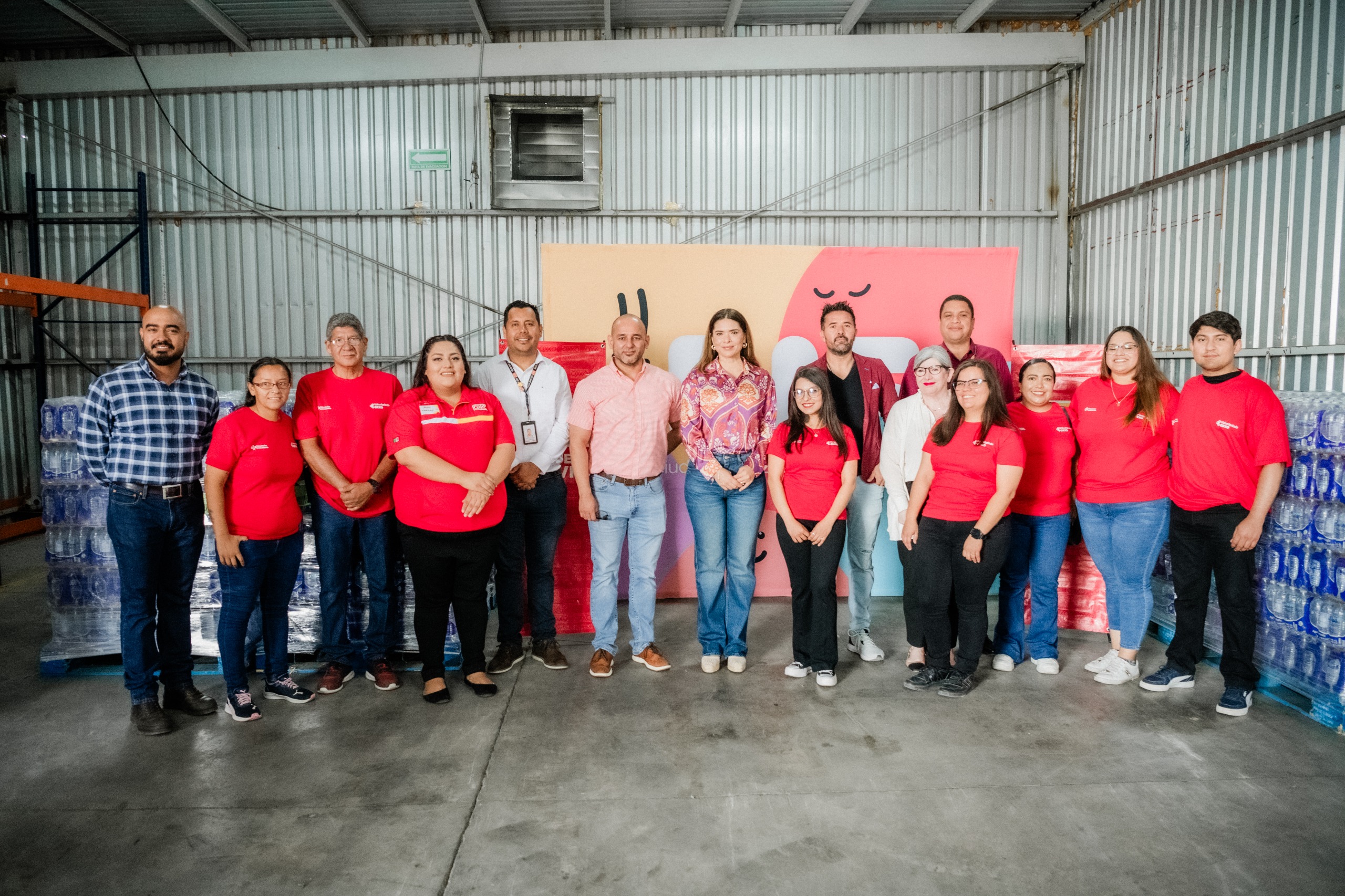 El donativo representa 51 mil 840 unidades de agua, 20 tarimas para el albergue “Felipe Ángeles” y otras 10 para México Mi Hogar.