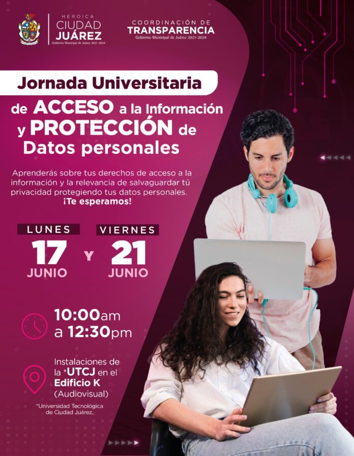 Por segunda ocasión, el Gobierno Municipal, a través de la Coordinación de Transparencia realizó la Jornada Universitaria de “Acceso a la Información y Protección de Datos Personales”, en la Universidad Tecnológica de Ciudad Juárez (UTCJ).
